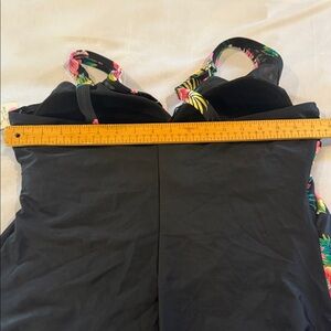 Dive into summer with this vibrant tropical floral one piece Krista Plus Shape Solution swimsuit. Featuring a stunning mix of pink and green on a classic black background, it's perfect for beach days and poolside lounging.