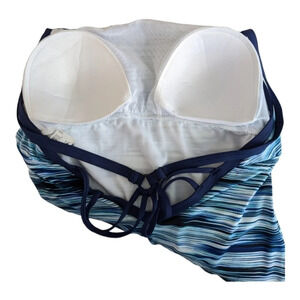 Krista Sport Bathing Suit Stripes Blue Aqua White NWOT