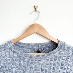 Kristin Nicole Sweater Dress Knit Navy White Variegated Women's M A-Line Long Sleeved. Polyester/Spandex - stretchy. Very good used condition. Please see photos for approximate measurements.