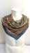 A striking vintage designer scarf from Krizia, made in Italy. This luxurious 100% silk scarf features a bold tiger motif, with the majestic big cat peering out from lush greenery against a soft gray background, bordered in blue. Finely finished with hand rolled edges, a hallmark of quality craftsmanship. Measuring 34" square, it drapes beautifully and is in pristine condition with no flaws noted.