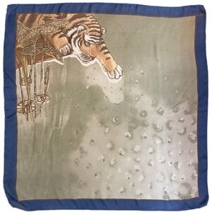 Krizia Italy 100% Silk Scarf 🇮🇹– Tiger Design – 34" Square – Hand Rolled Edges