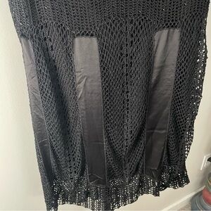 Kroshetta Crochet Sequin Beaded Satin Midi Skirt Black Boho Bohemian Size Large