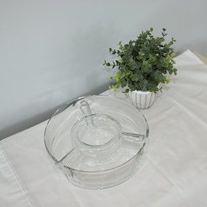 Sturdy dish with 3 sections and a round dip section in the centre. No chips or cracks.