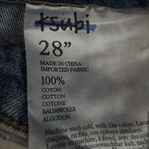 Cool machine wash with like colours, wash inside out, do not bleach, do not tumble dry, cool iron on reverse, do not iron on prints or metal hardware, If I have holes, they will grow over time, Wash me carefully but not excessively
