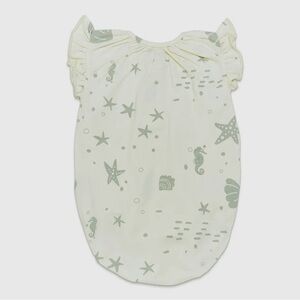 Designed in a sweet nautical print and super soft organic fabric. This cutie bunsuit features ruffles at the shoulders, buttons at the neckline for an easy dressing and elastic inside leg openings for a fun bubble fit. Missing hang tag. Sz 3-6 months