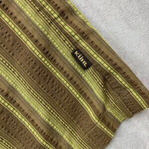 Kuhl Men Shirt Medium Brown Yellow Vertical Striped Button Up Seersucker Outdoor