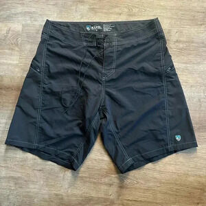 Fixed waist with a low-profile, grommet-free, ladder-lock drawstring closure.