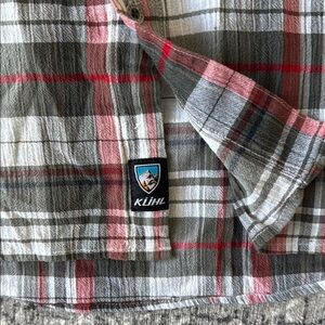 Kuhl Tropik Shirt Mens XL Red Gray Plaid Open Weave Gauzy Seersucker Airy