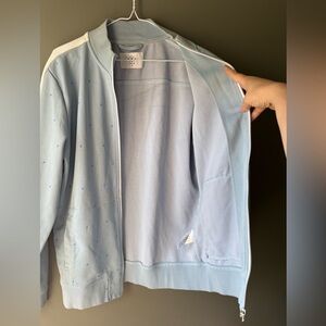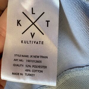 Kultivate, size small, Amsterdam men’s light blue zip up sweater with palm trees