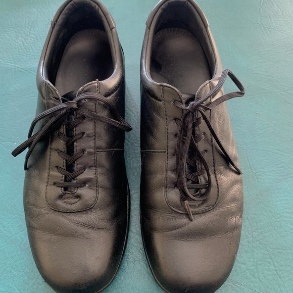 Kumfs ladies size 39 or 8.5 leather lace up loafer style black shoes comfortable