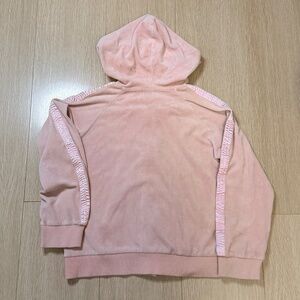 Kui Kyoku hoodie in a lovely pink velour! It features a full zip and a hood, perfect for cozy days. The sleeves have a unique ruffled design. It's in great condition and ready for a new home!