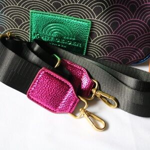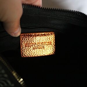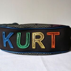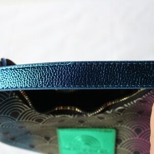 Kurt Geiger London replica small shoulder bag hobo/handbag purse. Very similar to the Southbank purse series but not authentic Kurt Geiger (still a well made bag!). Colorful rainbow pattern on black fabric with gold tone hardware, eagle head tag and "KURT" on bottom of purse. Main zippered compartment has inside pocket and small zippered section. Purse comes with shoulder strap which is detachable. Approx. measurements: 10" wide and 8" tall. Pre-owned but only used a few times and in excellent condition. Smoke-free, pet friendly home!