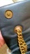 in excellent used condition with minor scratches to the back where it rubs on clothes when worn crossbody style ( it IS used) and a little spot that may come out with leather conditioner i just don't have any ( see ALL photos). small spot visible in video on the left of the interior. liner is excellent and clean. stitches are tight. eagle head has no missing crystals. chain when doubled up has an 11 inch drop approx.
