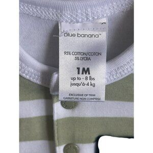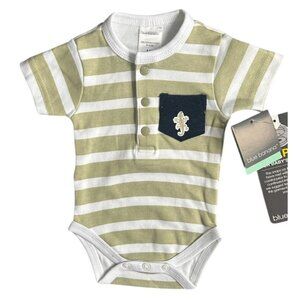 Kushies Blue Banana Short Sleeve Bodysuit Green White Stripes Snaps -New Born