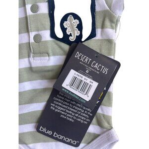Kushies Blue Banana Desert Cactus Short Sleeve Bodysuit Green White Stripes Snaps - New Born