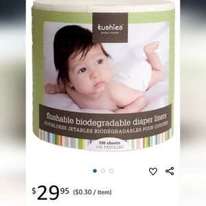 Kushies diaper liners for cloth diapers biodegradable 100 sheet roll. Includes 2- 100 sheet rolls