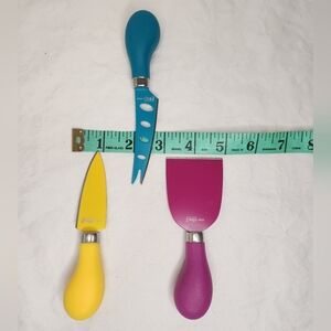 Set of 3 colorful High Carbon Stainless Steel Cheese Knives, 'Vive 2' by KUSSI from House of Knives.