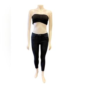 Dark wash skinny jean good stretch available button and zipper closure 5 pockets belt loops