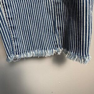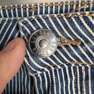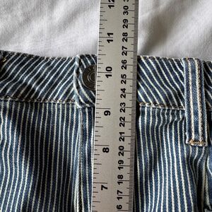 Style tags: railroad, trains, striped jeans, frayed, festival, summer, preppy, fair ground, street fair