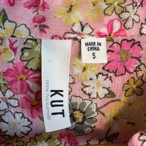 Kut From the Kloth Long Sleeve Sheer Button Up Crepe Blouse Multicolor Pink Sml