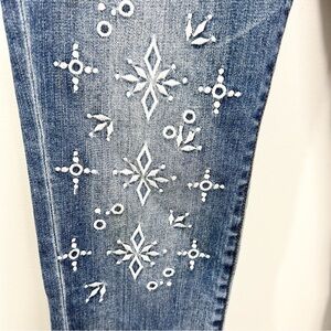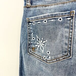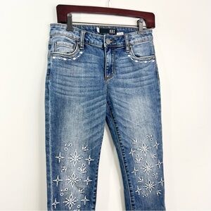 Kut from the Kloth Reese ankle straight cropped eyelet embroidered raw jeans 0