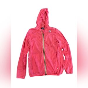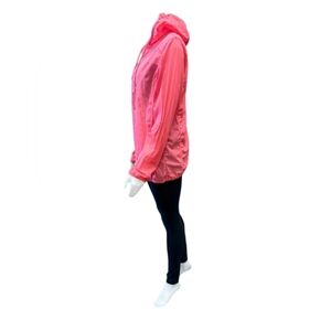 Pink mesh windbreaker 2 way zipper closure zippered pockets hood with drawstring good stretch available