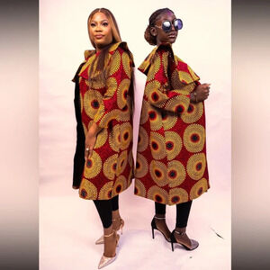 Kweenzyafrik Vintage Luxury Ankara floral patterned studded cape open jacket S