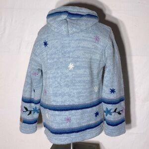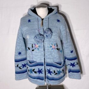 Kyber Blue Knit Full Zip Lined Wool Snowflake Flower Hoodie Sweater S