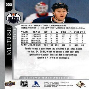 Kyle Turris (Oilers) 2020/2021 Upper Deck Extended Series Card - Card Number 555