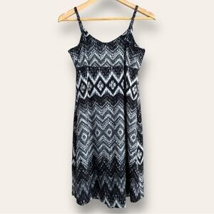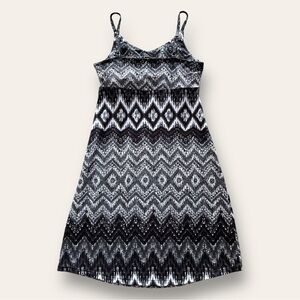 Freedom Trail by Kyodan A-Line Empire Waist Summer Dress Chevron Diamond Print Black, White and Grey.