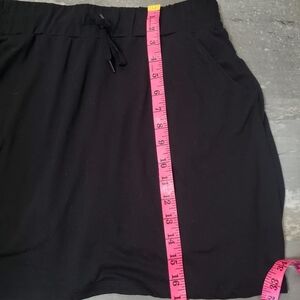 Kyodan Outdoor Black Women's Skort (Skirt with Built In shorts). Size L, see pictures for measurements. Favric is buttery soft, stretchy and comfy. Elastic waistband with adjustable cord. 2 front pockets. 17" length. Excellent condition. No stain, no rip. Non smoking house.
