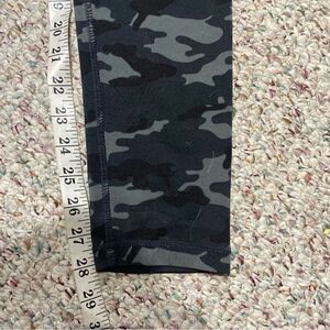 Picturing a pair of grey and black camo high waist leggings by Kyodan in a size S/M. Please refer to aprox measurements for accurate sizing. great tummy control.