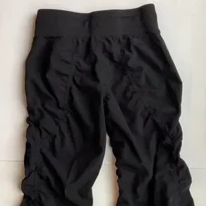 So cute! Ruched legs with drawcord hem Elastic waist, pull on style Pockets
