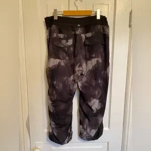 Super comfy and light weight capris. Size Medium Drawstrings at bottom, cargo style pleating.