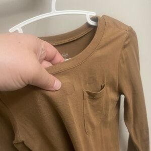 Kyte Baby bamboo long sleeve top in “coffee”. Good condition except there’s a couple small water marks as shown in photo. Size 4T.