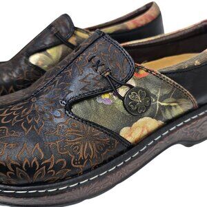 L' Artiste by Springstep Womens Leather Floral Clogs, Slip On Shoes, 41/ 9.5-10