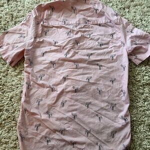 Stylish pink shirt with a unique pattern, perfect for casual outings.
