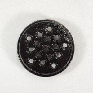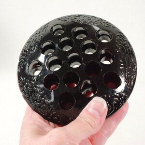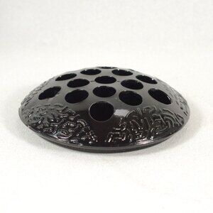 This listing is for a vintage L. E. Smith black amethyst glass flower frog. Made in the 1920s, this flower arranger has 16 holes surrounded by an Art Deco raised coral pattern .