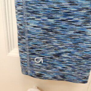 Blue athletic stretchy workout capris by GapFit, size large, with a pocket for your phone and ID. Stretchy and flattering, designed for ease of movement.