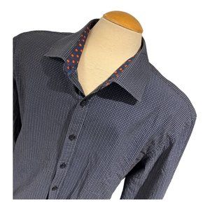 (L) JOHN LENNON Navy Button Down Dress Shirt Size Large 100% Cotton Contrast