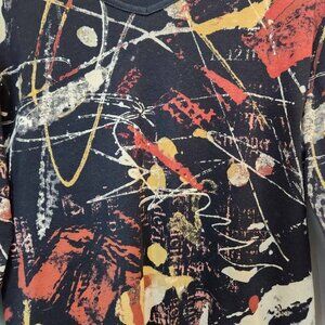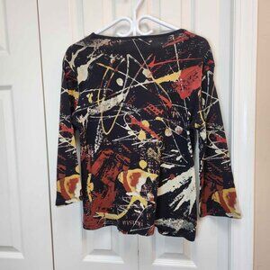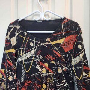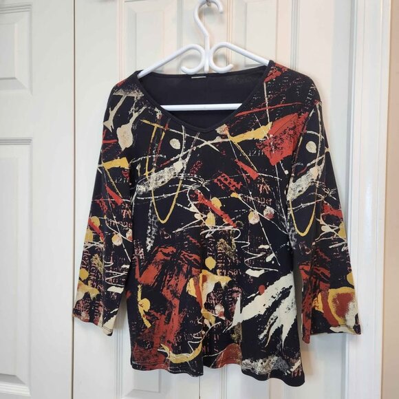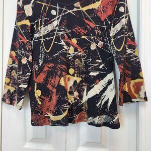 Jess & Jane Colorama top, women's size large. Warm autumn tones, abstract art design.