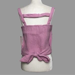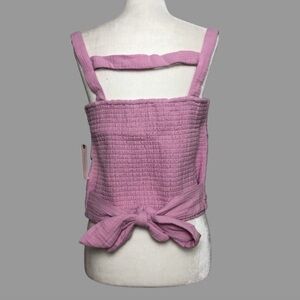 ❤️ L ❤️ NWT Anthro Top Tank Cropped Smocked Tie Back Bow Knotted