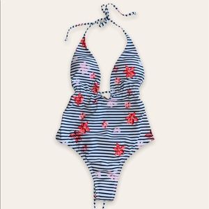 L Space Floral Bay Pamela Striped Halter Top One Piece Swimsuit Size 4