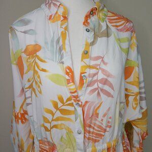 L Space Pacifica Tunic Beach Coverup Leaf Print Drawstring Waist Size XS/S 0-4