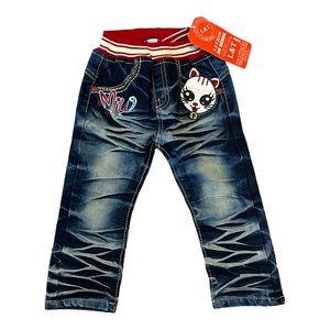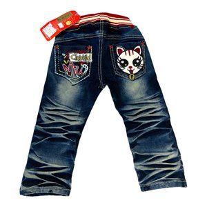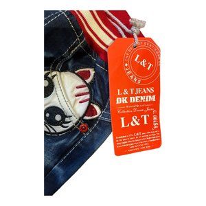 L & T Jeans Size 2 Kid's Jeans Club Kid Miw Kitty Kat Fading Jean Whiskers
