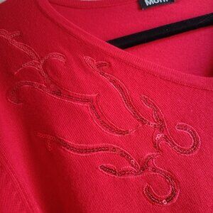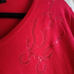 Beautiful si elegant Moffi Vibrant Red V-neck Sequin Sweater.