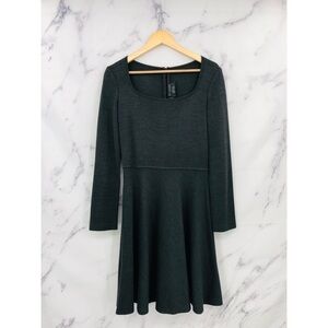 L011 St. John Long Sleeve Deep Scoop Neck Fit & Flare Pleated Circle Dress Grey