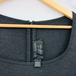 St. John Long Sleeve Deep Scoop Neck Fit & Flare Pleated Circle Dress Grey