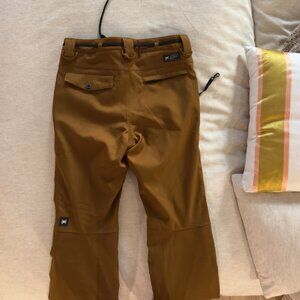 I've been obsessed with the L1 Premium Goods 'Thunder' snowboards pants for ages now and have them in different colours. They fit slim and just look so good on. Alas, I'm doing a whole different colour theme this year, so this brown-ish/ginger shade has to go. They're men's/unisex (I'm a woman, but I buy these pants exclusively because of the slim fit).