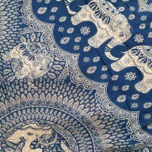 (New/Never worn) 100% Rayon harem pants with blue and white elephants in circle print.